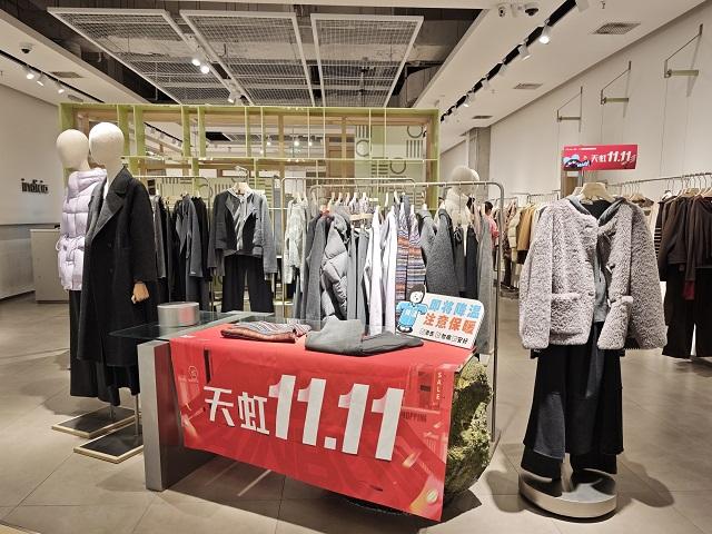 近期气温略有下降,保暖商品销售火爆。走进天虹购物中心朝阳洲店,秋冬服饰上新热销,羽绒服、羊绒衫等品类占据主要陈列位置,不少消费者在试穿选购。“我们现在有满1000元减100元、满500元减50元的优惠。”一家门店工作人员表示:“南昌气温降得很快,虽然现在还不太冷,但是大家已经在添置厚衣了,羊绒、羊毛类服装比较受欢迎。”