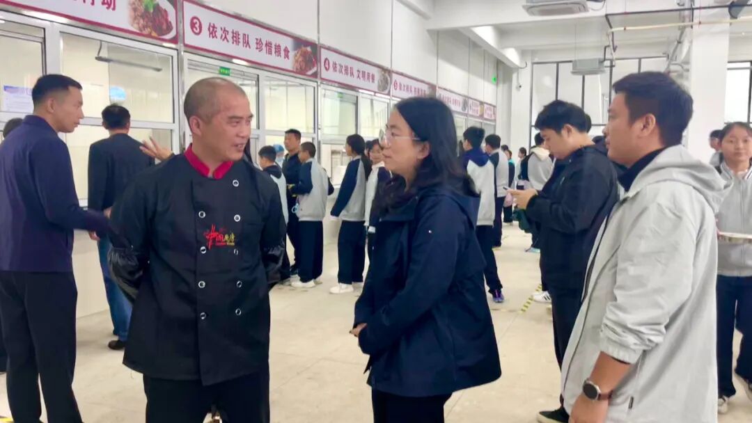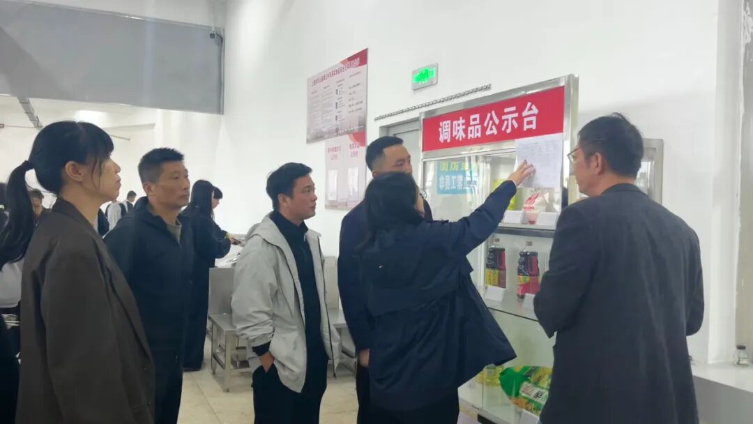纪念一行深入食堂各个区域,对原料储存区、烹饪操作区、餐具消毒区进行了实地检查,细致查阅了食堂管理台账。学校领导详细介绍了菜谱制定、学生意见收集等日常管理措施,并就优化用餐体验进行了探讨。