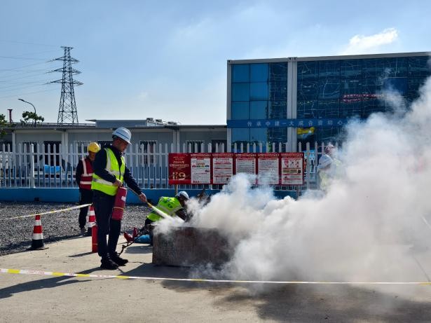 11月13日,中建-大成凯晟集团嘉兴(二期)基地项目以“岁末年初百日安全无事故活动”为抓手,联合城南街道天佑社区党委、经开区消防救援大队开展消防应急演练。活动紧扣公司安全“137”管理要求,深化“强基固本年”治本攻坚成果,以“红色党建”赋能安全生产,筑牢岁末年初安全防线。
