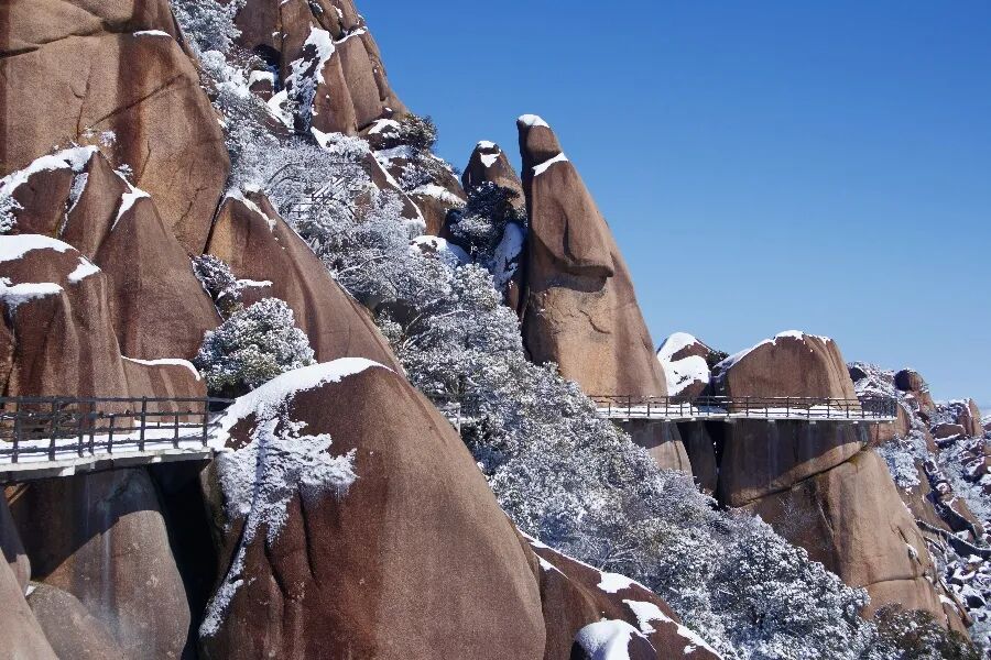 您站在栈道上,远远望去