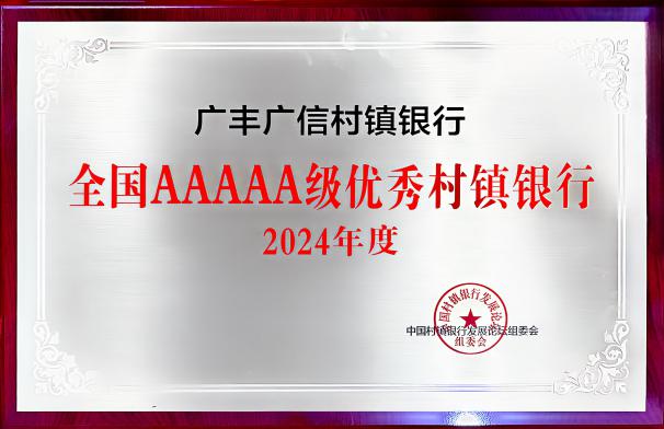 广丰广信村镇银行荣获2024年度“全国百强村镇银行”及“AAAAA级优秀村镇银行”双项殊荣