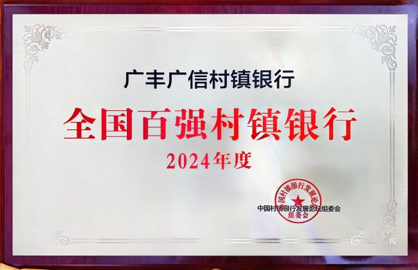 近日,从全国村镇银行综合评选活动中传来振奋人心的喜讯!由中国村镇银行发展论坛组织,从经营效益、资产质量、社会责任、创新能力及客户服务等多维度进行综合评估,广丰广信村镇银行(以下简称“广丰村行”)凭借卓越的综合实力和优质的金融服务,荣获2024年度“全国百强村镇银行”与“全国AAAAA级优秀村镇银行”两项奖项!这是广丰村行发展史上又一个重要的里程碑。