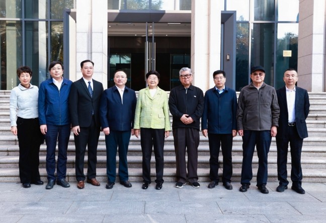 随后,领导一行移步至当代艺术展厅,先后参观了“地热纪元”龚循明陶瓷板画艺术展、文物新造-谢强“中华文明”大型主题紫砂创新展。委员长在每件精品力作前驻足欣赏,认真听取两位艺术大师关于创作理念与技艺创新的详细汇报,深入了解了传统工艺在当代艺术语境下的创造性转化与创新性发展。顾委员长对艺术家们扎根传统、勇于创新的艺术实践表示高度赞赏,并就艺术创作如何更好服务文化强国建设与大师们进行了亲切交流。