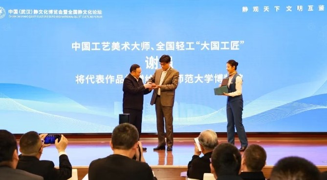 中国工艺美术大师、紫砂艺术巨擘 谢强,将其“以壶述史”的代表性紫砂作品《吉祥启泰》赠予华中师范大学博物馆,由华中师范大学党委书记夏立新代表受赠。