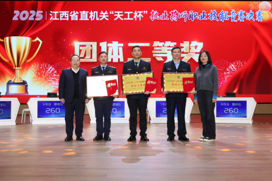 近日,2025江西省直机关“天工杯”执业药师职业技能竞赛决赛在南昌圆满落幕,上饶市市场监管局代表队凭借扎实的专业知识储备与出色的临场应变能力,在竞赛设置的组织奖、团体奖、个人奖三类奖项中均有斩获。