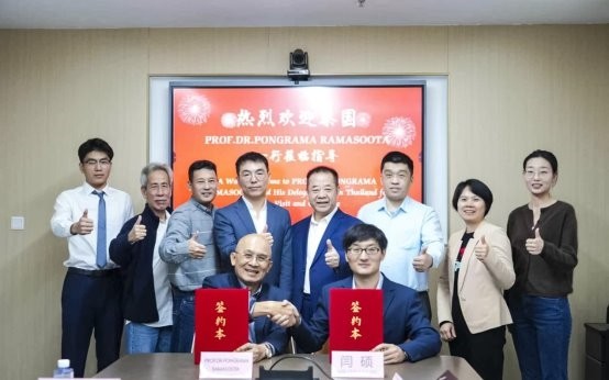 2025年11月14日,由泰国玛希隆大学PROF. DR. PONGRAMARAMASOOTA教授、老挝国家旅游产业股份公司董事长潘锡六为首的代表团在中科稀珍总部举行合作洽谈会并签署战略合作备忘录,就中科稀苷橡胶树种子油、稀有人参皂苷、牛至精油等核心产品的泰国市场准入及东盟市场推广达成战略共识。此次合作洽谈是中科稀珍响应国家“一带一路”共建“健康丝绸之路”政策的具体实践,更标志着中科稀珍自主研发的大健康技术成果正式走向国际市场。