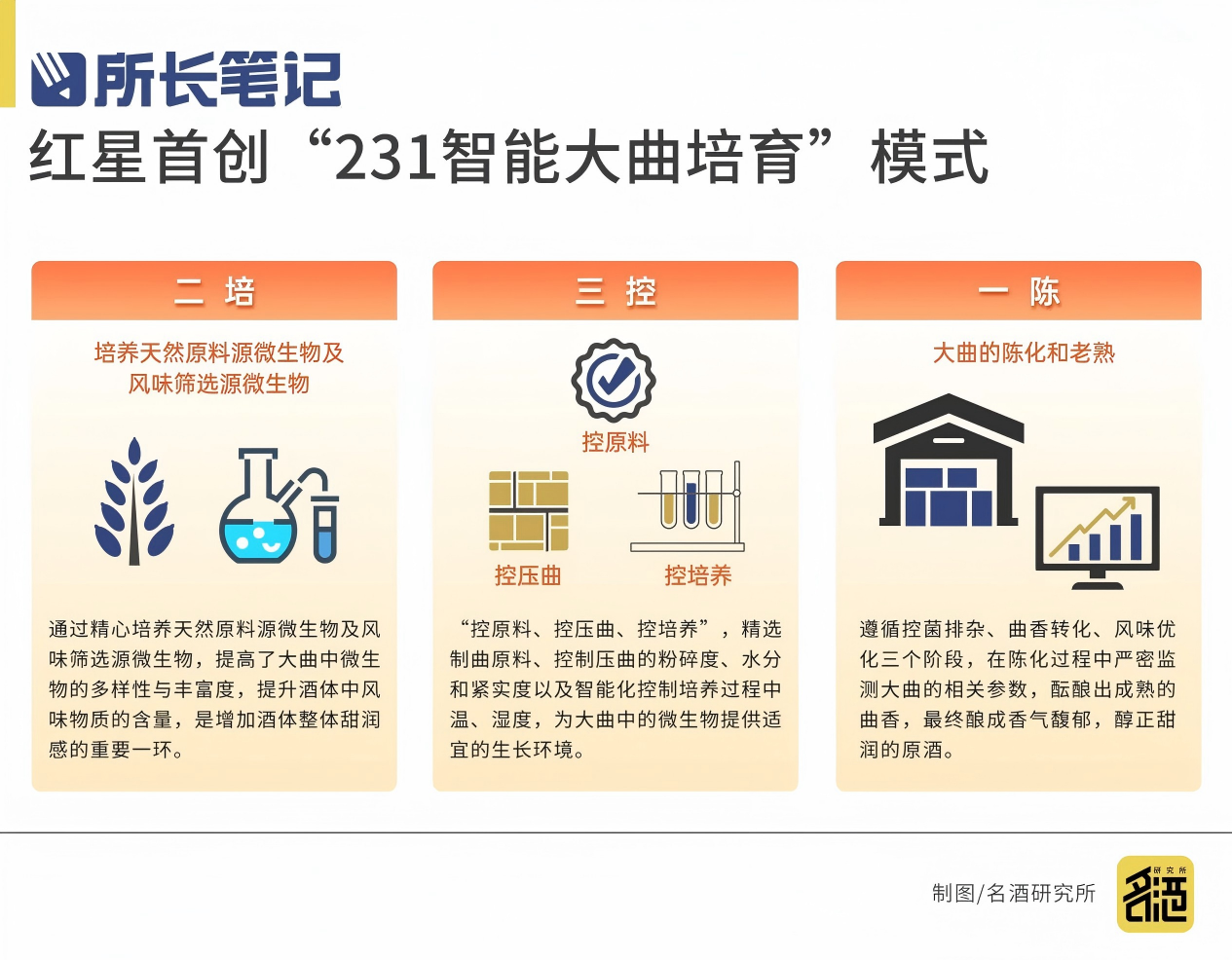 第八代红星二锅头带来的甜润口感,背后是多重工艺提升的合力。首先要归功于红星独创的“231智能制曲密码”;同时,发酵时间的延长让原料中的风味物质得以更充分转化,为甜润口感奠定扎实基础;再加上国家级评酒委员和酒体设计师组成的酒体设计团队,借助现代先进的检测技术,将人体的风味感知与数字化酒体风味调控进行深度融合,并通过长期的技术创新实现精准可控的“智能酿造、数智勾调”,共同造就了第八代红星二锅头独有的甜润特质,入口顺滑且余味绵长。