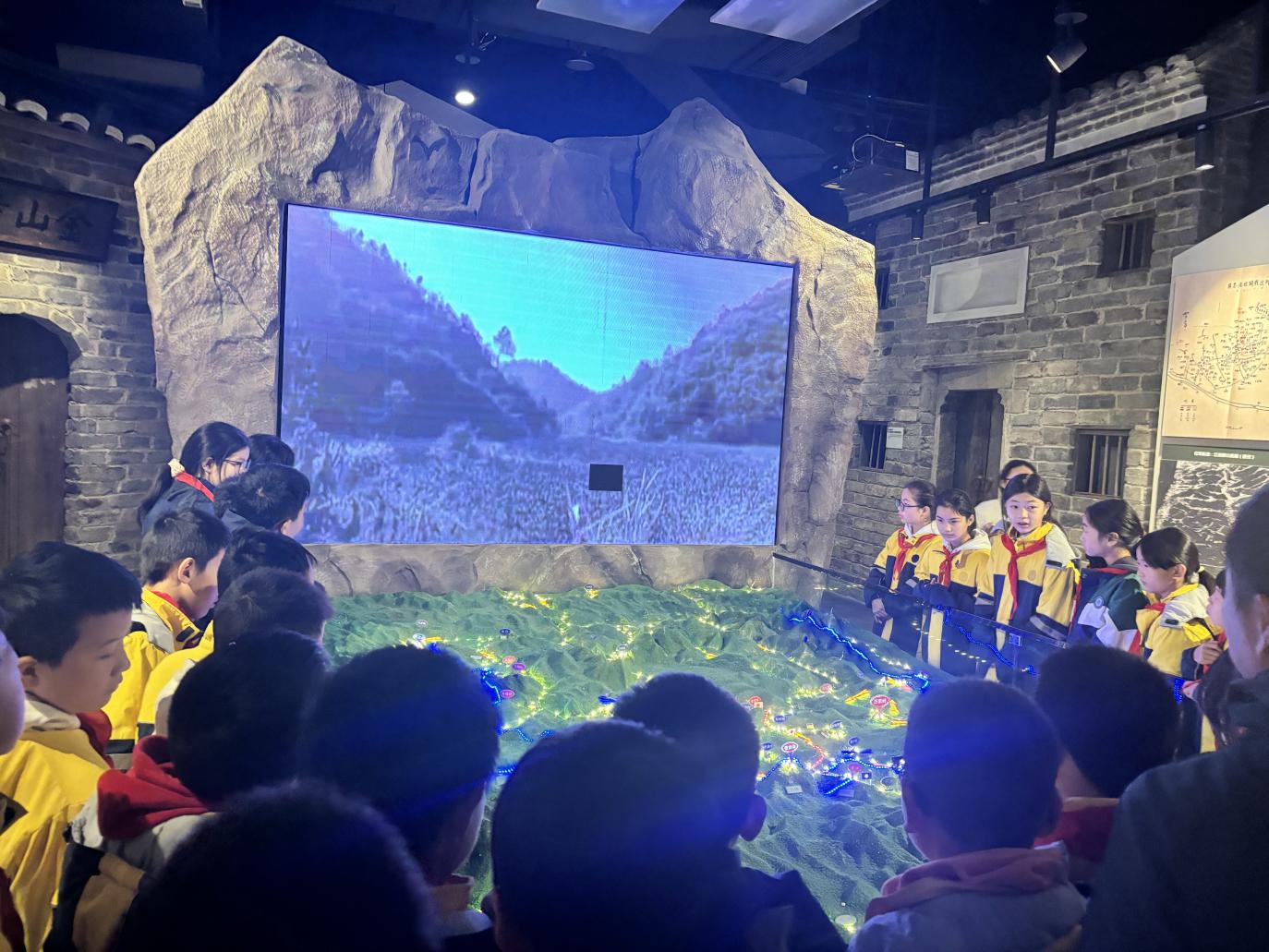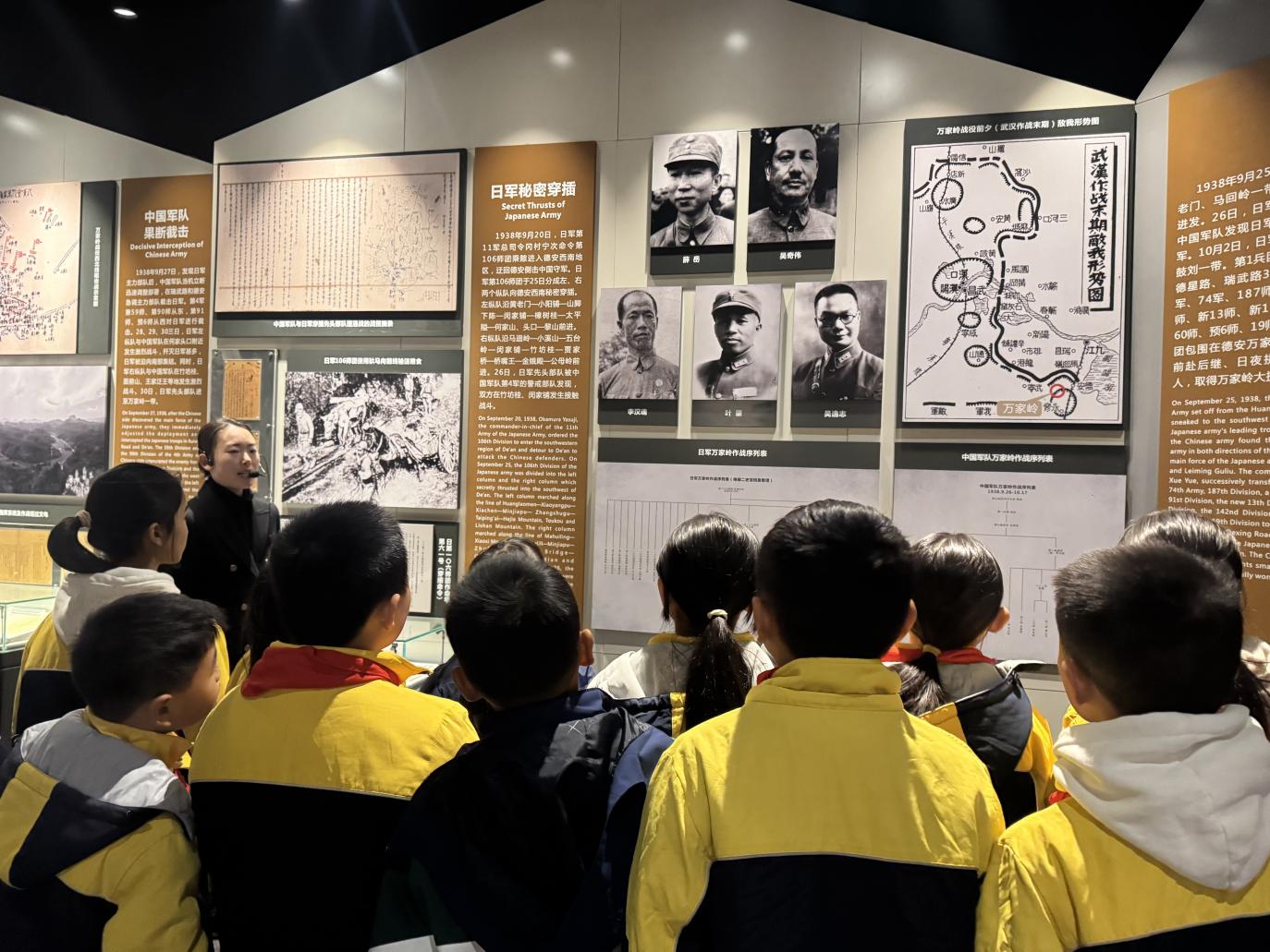 在讲解员引导下,党员、团员代表与队员们共同走进陈列馆,通过历史图片、战地实物、数字沙盘等,全方位感受万家岭战役的壮阔历程与中国军队抗击日本侵略者的顽强斗志。参观中,大家驻足凝视、认真聆听,在纪念墙前重温战斗传奇,在英雄雕塑前感悟军人气概。