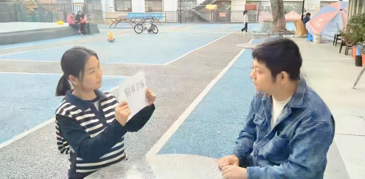 活动现场,志愿者们围绕高频发生的诈骗场景进行模拟演绎,并录制成贴近聋人朋友认知习惯的反诈手语教学视频,通过直观的动作演示和简洁的宣传标语提示,将“刷单返利”“虚假投资”“冒充公检法”等常见骗局的识别要点和防范步骤生动呈现。同时,面对面与聋哑残友交流沟通,了解他们的生活需求,帮助他们提升防范电诈的意识,让反诈知识真正入脑入心。