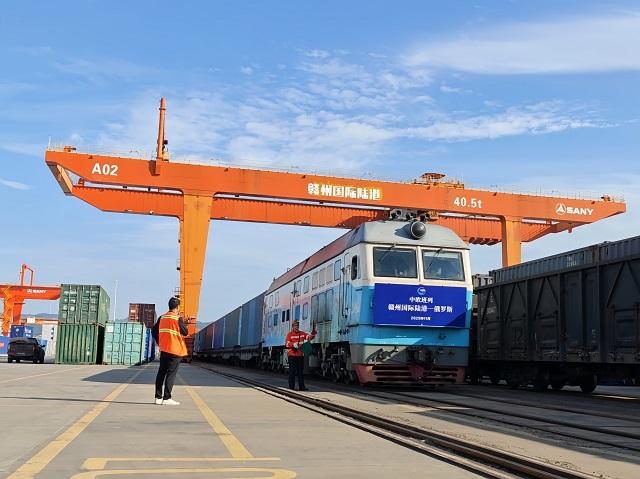 11月19日,一列中欧班列从赣州国际陆港驶出,驶往俄罗斯