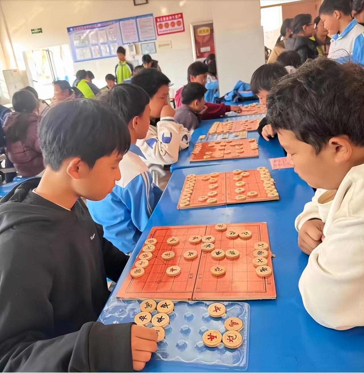 比赛开始了!整个操场瞬间成为沸腾的海洋。短跑赛道上,选手如离弦之箭冲出起点,观众席呐喊声浪一波高过一波;跳高赛场,运动员腾空起跳的身姿划出一道道优美弧线;拔河赛场,师生紧握麻绳、奋力拉拽,每一寸拉扯都凝聚着集体力量。无论是挥汗如雨的队员,还是在一旁呐喊助威的同伴,所有人的心跳同频共振;投篮比场区,参赛选手全神贯注,屈膝跃起,篮球划出一道道抛物线飞向篮筐;趣味项目区,“摸石头过河”“接力传物”等游戏轮番上演,选手们机智灵活、配合默契,展现了团结协作的精神。体测区同样热闹非凡。仰卧起坐比赛中,学生们躺在垫上,双手抱头,一次次挺身而起,用毅力完成每一项测试;赛场之外,室内象棋比赛同时展开角逐,棋手们端坐棋盘前,凝神思索,落子淡定,尽显沉稳与智慧,让运动会在激情澎湃之余,也流淌着理性与文化的气息。