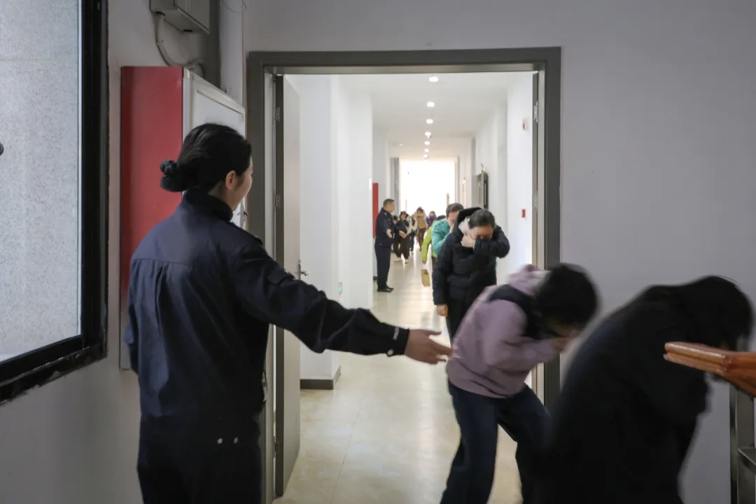 演练指令下达后,疏散演练正式启动。按预设分工,疏散引导组成员引导居民和店铺工作人员捂口鼻、弯腰低姿,沿预定路线快速有序撤离至安全区域;与此同时,消防员迅速抵达“火灾”现场,利用专业装备开展模拟灭火作业,快速控制“火势”蔓延,整个疏散及模拟灭火过程紧张高效,无人员滞留。