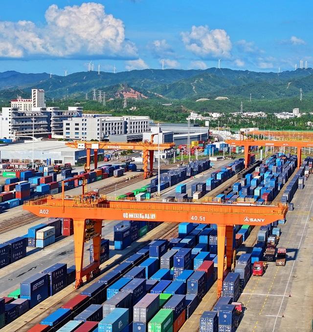 赣州国际陆港货场。(人民网 朱海鹏摄)