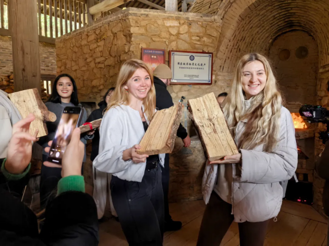外国游客打卡景德镇古窑,感受“非遗中国年”。(资料图片)