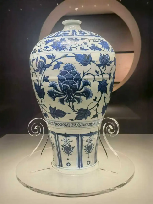 元代青花缠枝牡丹纹梅瓶。经济日报记者王晋摄