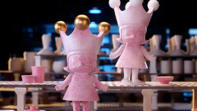 景德镇陶瓷与泡泡玛特联名推出的Molly陶瓷玩偶。(新华社)