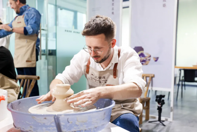 2024年6月9日,10余位来自德国的艺术家与景德镇当地陶瓷艺术大师、部分“景漂”艺术家在三宝瓷源境容美术馆共同开展艺术创作。(图片来源:珠山区融媒体中心)