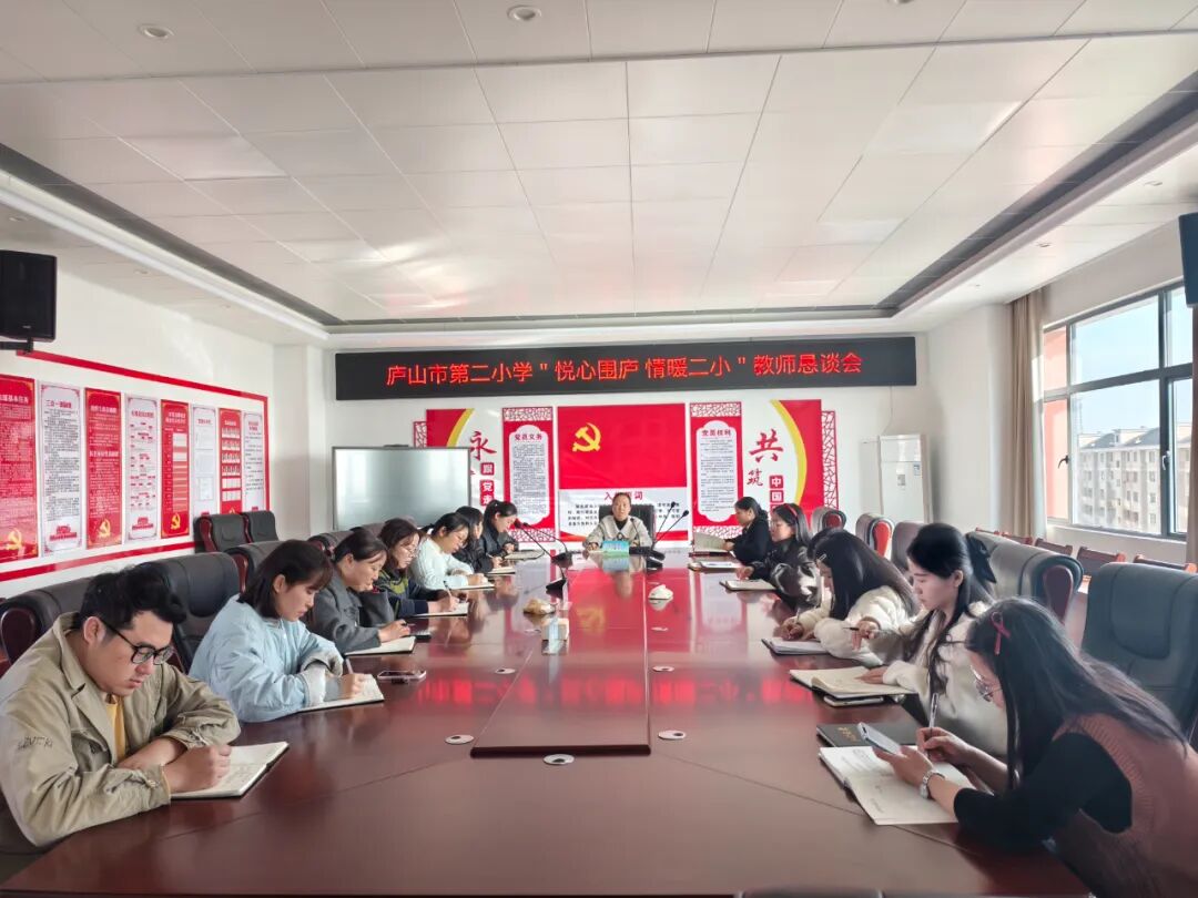 11月25日,庐山市第二小学以“悦心围庐,情暖二小”为主题的教师恳谈会温情启幕。校党支部书记、校长钱瑛琳,副校长姜淑华与各年级组教师代表围坐一堂,在轻松融洽的氛围中复盘工作、建言献策,以同心之力筑牢发展根基,以奋进之姿谋划兴新之路。