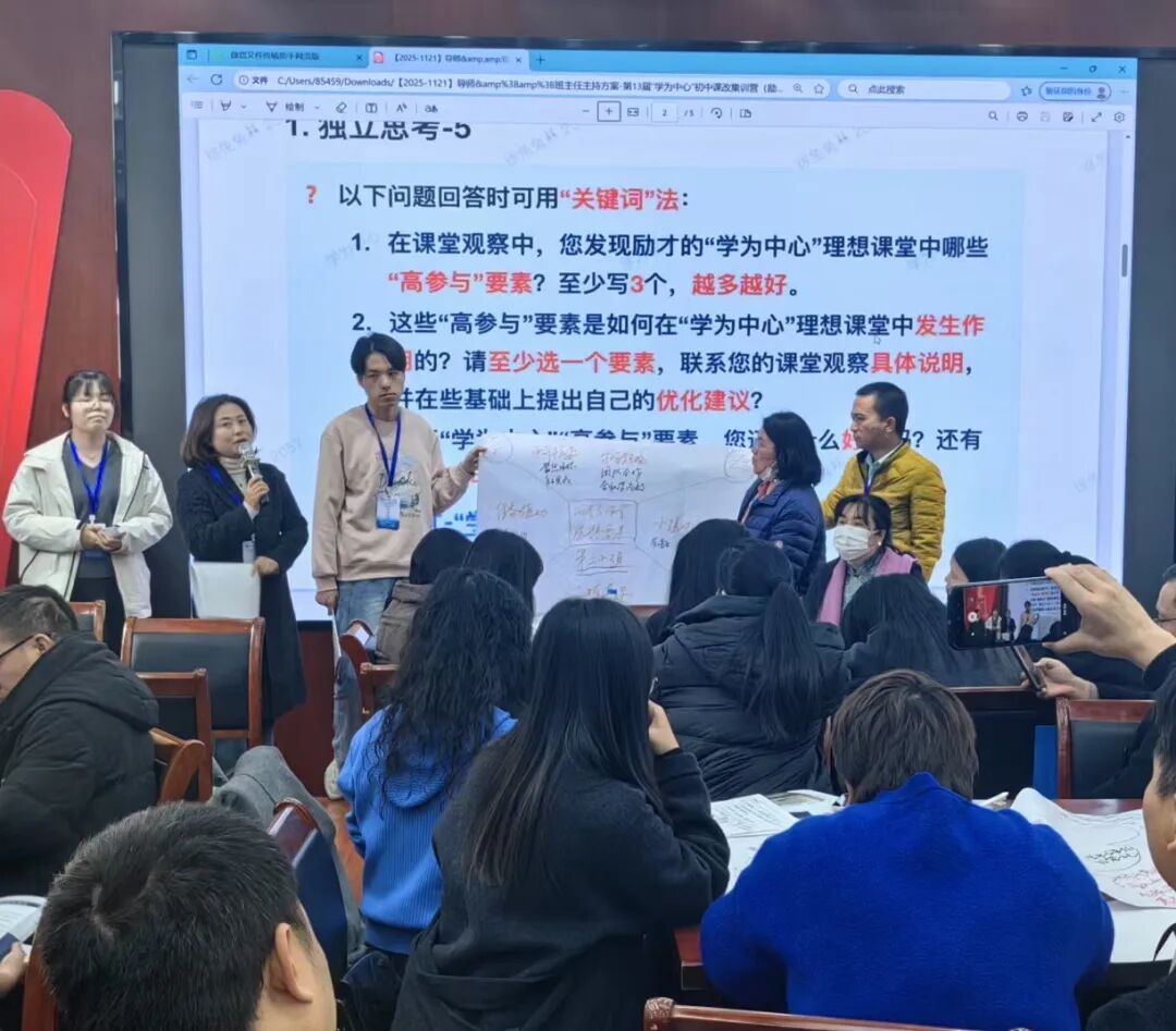培训聚焦理论提升与实践落地,资深导师从“高真实、高数量、高质量”维度解析“高参与”课堂构建方法,引导教师向“学习设计师、教练”转型。分组实操环节中,教师们结合理论优化教学设计,将抽象理念转化为具体课堂方案。晚间文艺晚会展示的学生才艺,进一步彰显了个性化成长的育人成果。