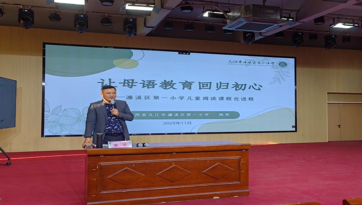 九江市濂溪区第一小学党总支书记陈亮开展了《让母语教育回归初心》讲座。陈亮从大声读、演谈式等多种阅读形式入手,详细介绍了整本书阅读教学的实施策略和方法,为老师们开展整本书阅读教学提供了清晰的思路和具体的操作方法。