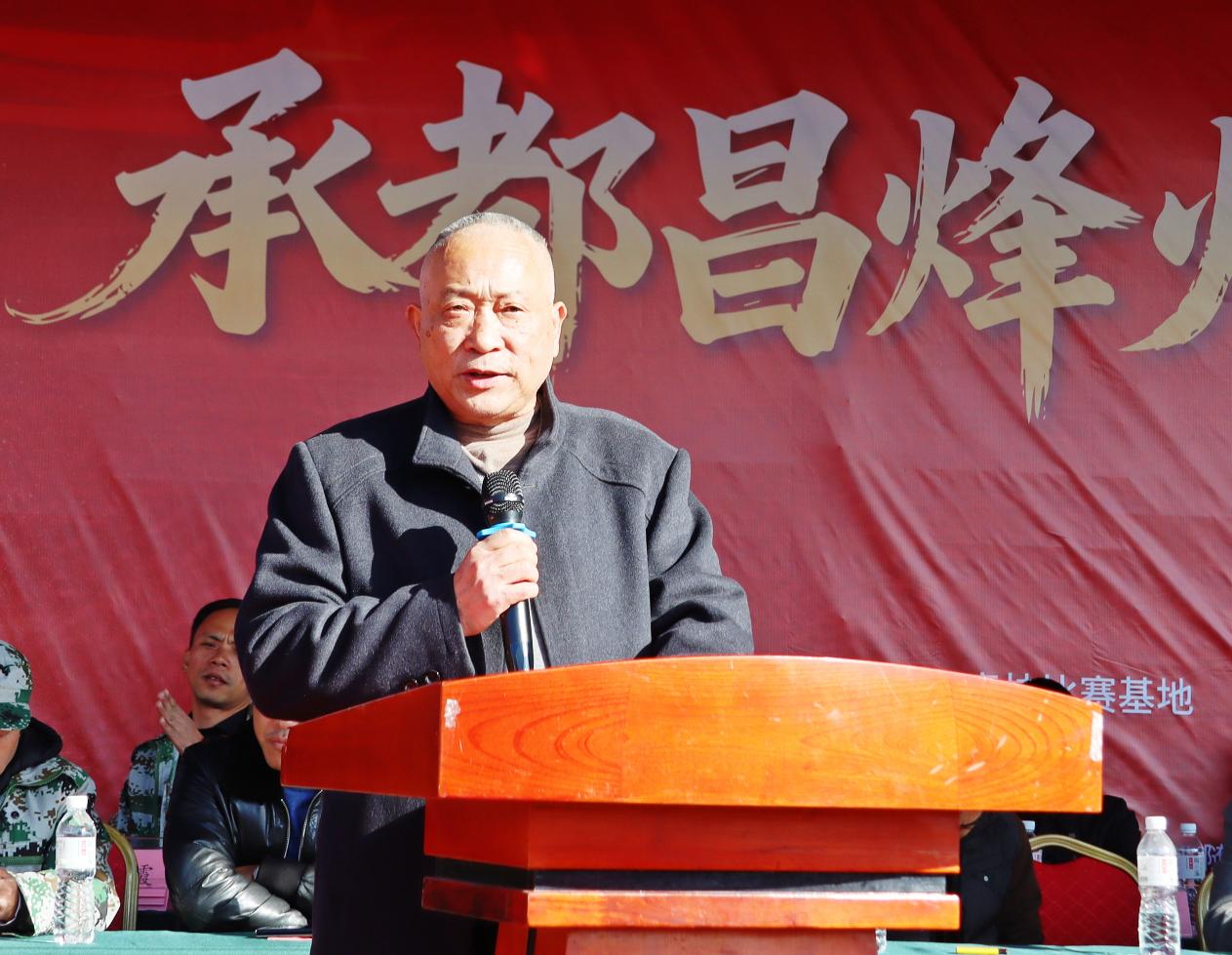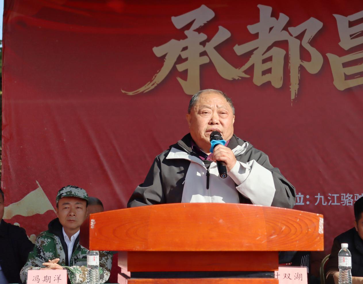 九江市都昌经济文化发展促进会党建指导员江达禹宣布:2025年九江市都昌经济文化发展促进会国防教育竞技比赛开幕!霎时,操场上红旗昭展,一片欢呼!