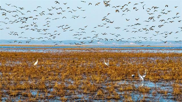 作为全球重要候鸟栖息地,鄱阳湖畔的吴城候鸟小镇,湿地生态优越,每年冬季数十万羽候鸟飞抵越冬,白鹤、东方白鹳等珍稀鸟类集群栖息。