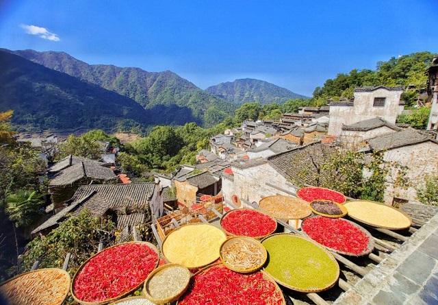 婺源篁岭的晒秋场。(全媒体记者 许玉宸摄)