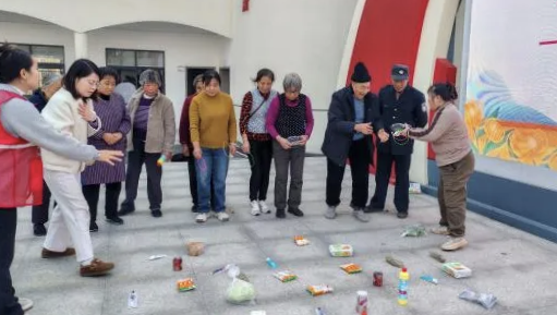活动在一片欢声笑语中拉开序幕。在工作人员的引导下,老人们首先进行了十分钟的坐姿健身操,通过舒缓的动作放松关节、活络筋骨,为后续活动做好热身准备。随后,现场展开了“快乐接力”“螃蟹竞走”等趣味游戏环节。老人们虽已白发苍苍,却精神矍铄、兴致高昂,在协作与欢笑中展现出蓬勃的活力与乐观的心态。活动最后,趣味套圈游戏将现场气氛推向高潮,老人们瞄准目标、巧妙投掷,每有“命中”便引来阵阵喝彩,幸福院里洋溢着温暖欢快的气息。