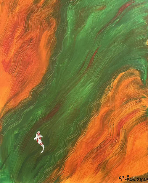 从技法形态审视,陈持平的作品尽显色彩丰富、层次分明的视觉特质。在他的笔下,丙烯诸色早已超越物理颜料的属性,成为被赋予生命的叙事主角。他巧用丙烯特有的流动性与饱和度,通过层叠、渗透、融合等手法,构建出既具有强烈渲染张力,又暗藏微妙变化的色彩空间。这种对色彩“生命力”的精准掌控,让作品拥有独一无二的悦目效果,更使画面突破单纯的形式美感,跃升至价值观与情感表达的高远境界。