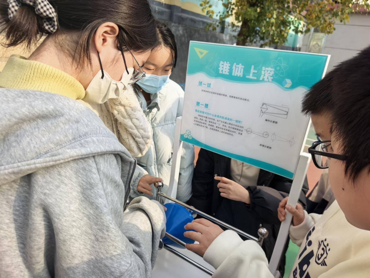 体验过后,同学们纷纷分享收获。有同学感慨:“以前觉得机器人离生活很远,今天亲眼看到它听从指令完成动作,才发现科技就在身边。”还有同学对“锥体上滚”展品印象深刻:“看似违背常识的现象,弄懂原理后才明白科学的奇妙。”