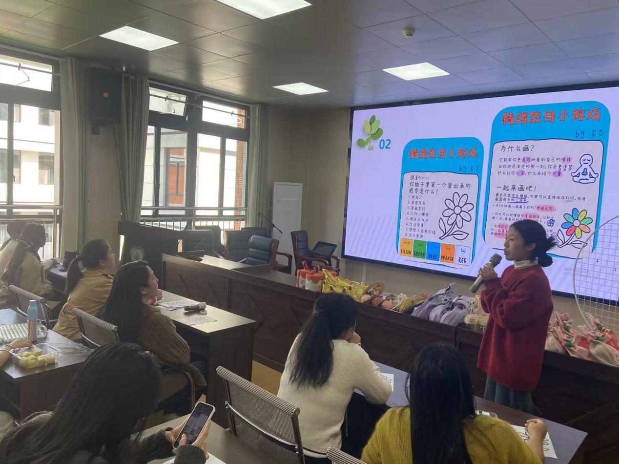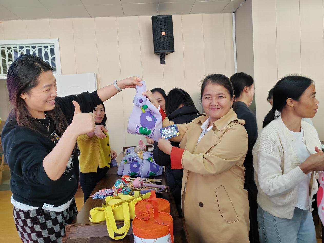 完成创作后,老师们将独一无二的“情绪花朵”悬挂展示,并参与了热闹的抽奖环节。现场笑声阵阵,气氛融洽热烈。