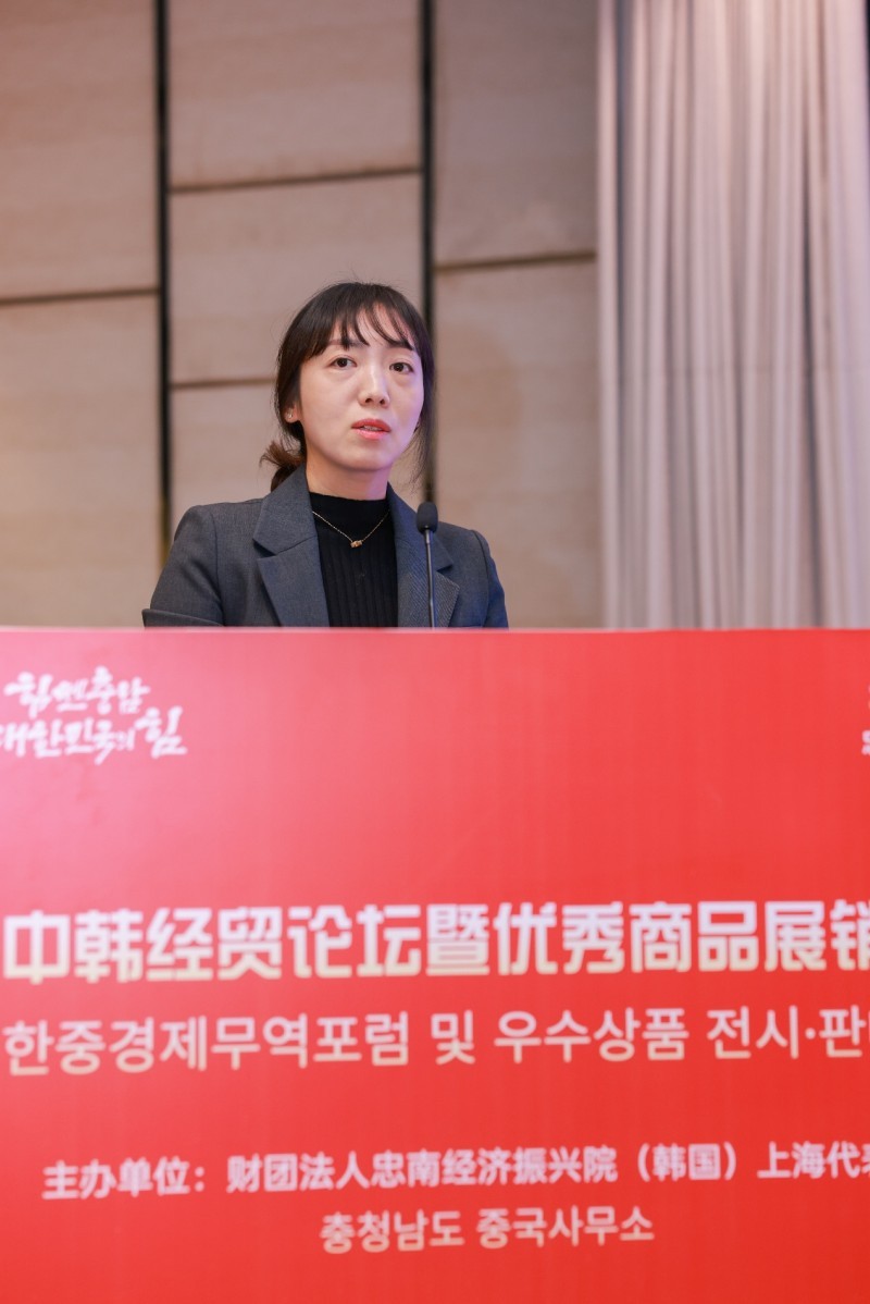 聚焦中韩产业深度合作的中韩经贸论坛于2025年12月11日下午在上海虹桥宾馆举行。本次论坛由财团法人忠南经济振兴院(韩国)中国代表处主办,通过主题推介+集中签约+人文交流模式,推动中韩双方在数字贸易、智能制造、消费品等领域的务实合作,本次活动由忠南经济振兴院中国代表处徐浩然主持。