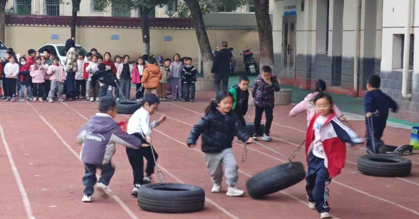 课后延时,在田径场,接力赛正在火热进行。孩子们手持接力棒奋力奔跑,每一次交接都凝聚着信任与默契;不远处,“青蛙跳”活动区里,学生们蹲跳前行,动作灵巧,笑声不断;拔河赛场呐喊震天,两边队伍紧握长绳,齐心协力,在力量的拉锯中体会团结的真谛;武术操方阵则展现着另一种风貌,学生们动作整齐划一,刚劲有力,在一招一式中传承着传统文化的精神;独轮车和轮滑区域总是充满挑战与乐趣。独轮车上的孩子认真把握平衡,从摇晃到平稳前行,脸上洋溢着突破自我的喜悦;轮滑少年们如风穿梭,轻盈的身姿展现出速度与技巧的融合。
