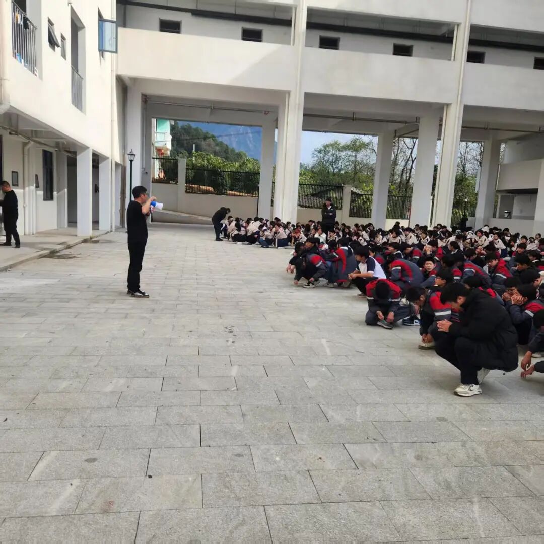 16日中午,学校组织住校生开展实战化消防应急疏散演练。疏散信号响起后,学生按预定路线快速撤离,楼梯间内保持单列行进,按正确逃生方法捂住口鼻,低姿弯腰,有序撤离至指定安全区域。