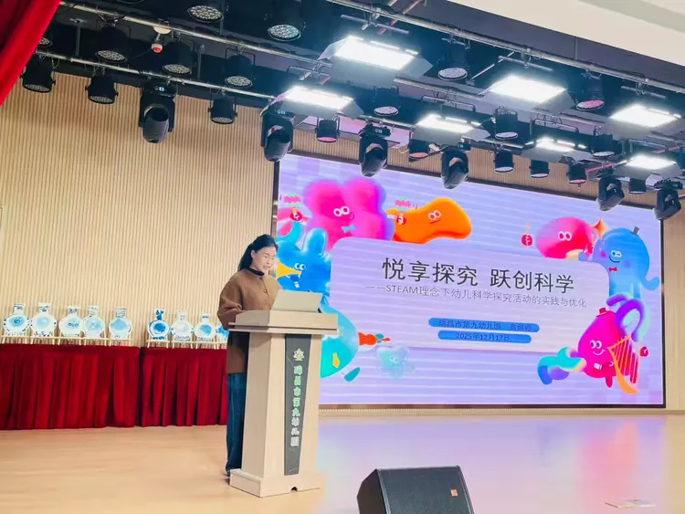 高婷婷园长主讲微讲座《悦享探究,跃创科学——STEAM理念下幼儿科学探究活动的实践与优化》,从STEAM教育的核心理念出发,结合生动真实的案例,分享了如何多领域融合,设计出既符合幼儿兴趣又激发探究精神的科学活动。她强调,“悦享”是态度,“跃创”是能力,在玩中学、做中思,才能真正点燃幼儿的好奇心与创造力。