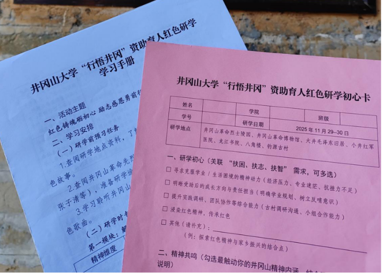 “依靠群众”是井冈山精神的重要内涵,也与资助育人“感恩回馈”的理念高度契合。在小井红军医院,130余名重伤员和医护人员互帮互助、壮烈牺牲的故事,让学子们热泪盈眶;龙江书院“朱毛会师”的历史,让大家深刻体会“团结就是力量”。机电工程学院25级受助学生艾卓成说:“先辈们依靠群众站稳脚跟,我们如今享受国家和学校的资助,更要懂得感恩回馈。”研学后的分享交流会上,不少学子主动提出参与志愿服务、帮扶低年级困难同学。学校顺势开展“励志故事分享会”,组织学子填写《研学初心卡》,将感恩之情转化为具体行动——这正是资助育人的终极目标:通过红色精神浸润,让受助学子从“接受帮助”转变为“传递温暖”,增强社会责任感,成为懂得感恩、乐于奉献的时代新人。