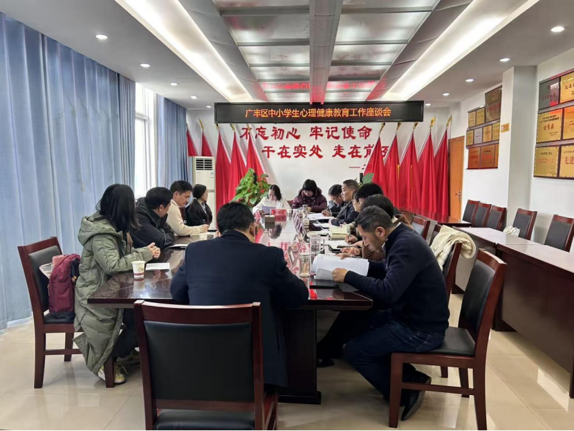 19日下午,唐教授在广丰中学召开调研座谈会,与学校领导、心理健康教师、班主任代表等深入交流。广丰中学汇报了学校心理健康教育的具体做法与困惑,唐教授结合上午团辅活动的观察,对学校心育工作提出“系统化、课程化、生活化”的实施建议,并鼓励学校打造具有校本特色的心理健康支持模式。