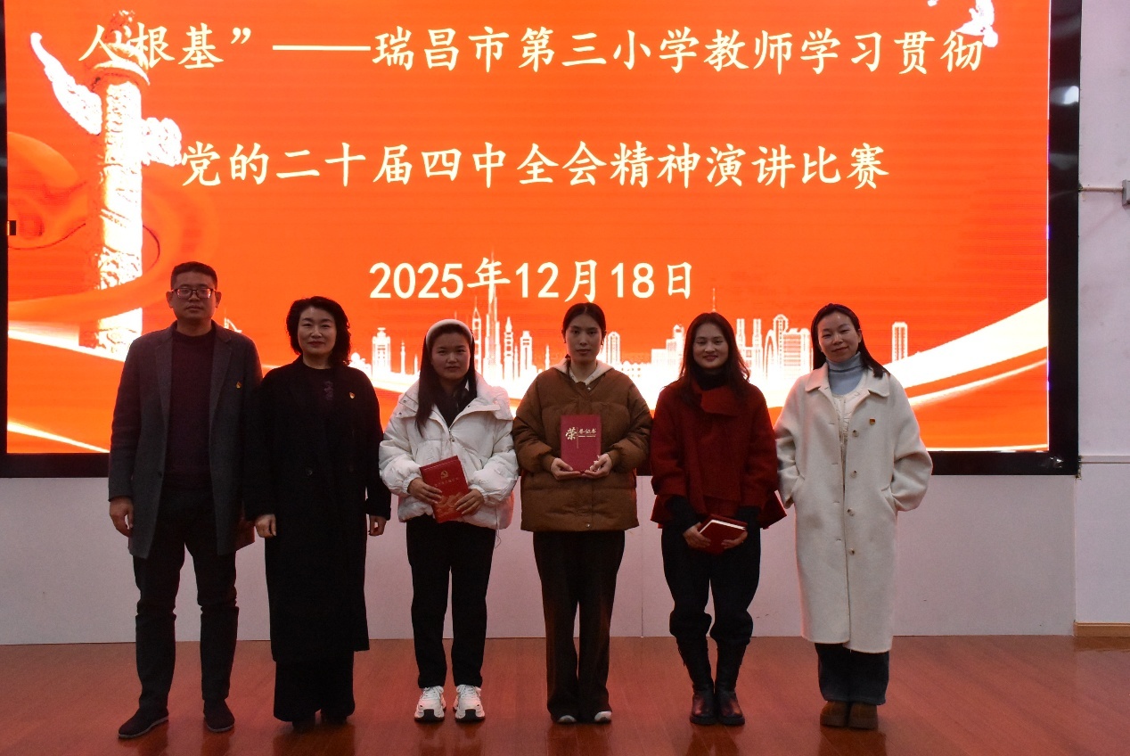 为深入学习贯彻党的二十届四中全会精神,推动党建与教育教学工作深度融合,12月18日,瑞昌市第三小学隆重举办“深学全会精神·固本兴新勇争先·筑牢育人根基”主题演讲比赛。