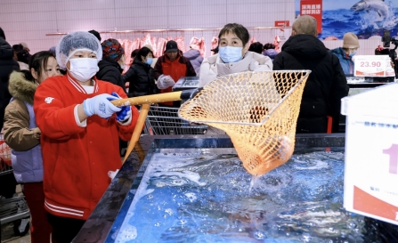 恰逢冬至佳节,门店的水饺专区成为人气聚集地。近30款不同馅料的水饺搭配买赠活动,五天累计销量突破3万袋,一度出现售罄后紧急补货的情况。其中猪肉大葱水饺凭借地道风味稳居销量榜首,京东自有品牌2.5kg装水饺更是凭借亲民定价,成为家庭冬至囤货的首选。同时,满129元抽整扇福猪的开业福利,让现场欢呼声不断,进一步点燃了消费者的购物热情。