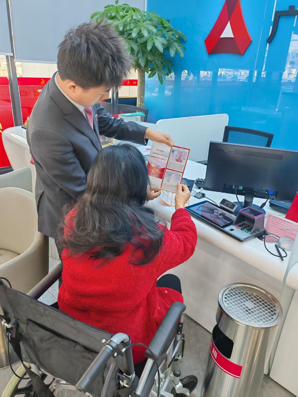 近日,广发银行南昌青山湖支行在服务过程中,主动为一位行动不便的坐轮椅客户提供了细致周到的金融服务,工作人员在发现客户行动不便后,第一时间主动上前协助,全程陪同其完成业务办理。网点工作人员不仅调整座椅确保轮椅可顺畅通行,同时耐心指导其使用智能设备,避免因操作困难产生焦虑,且为客户普及了金融安全知识,凭借专业、贴心的服务态度和完善的无障碍设施,赢得客户高度评价,展现了银行践行社会责任、优化服务体验的积极成果。