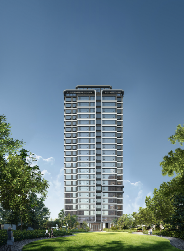 建筑设计上运用极简立面,采用铝板、格栅、公建化封窗,兼具品质感与艺术性;园林由大师DDON 操刀设计,以一街一府两轴串联 5大园境,造层层递进景观动线;又将商业街与公园景观深度融合,巧妙串联“城市公园商业”到“私家尊贵府邸”的场景有序过渡,营造全龄全时段隐奢微度假体验。