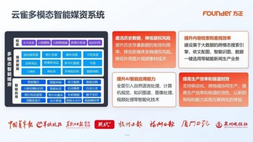 方正电子的云雀多模态智能媒资系统,通过AI驱动跨模态检索、计算机视觉、知识图谱、视频处理等智能化技术,将报纸、期刊、音视频、历史稿件等分散数据,转化为可智能检索、高效复用的“数据资产”,既盘活了媒体历史存量数据,降低版权侵权风险,又能通过智能应用赋能新闻生产,让数据从“闲置资源”变为“生产动能”和“价值资产”。