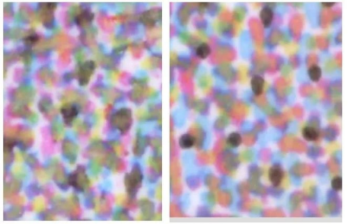 ▲方正非凡墨水(左图)VS方正捷彩墨水(右图)的网点差异