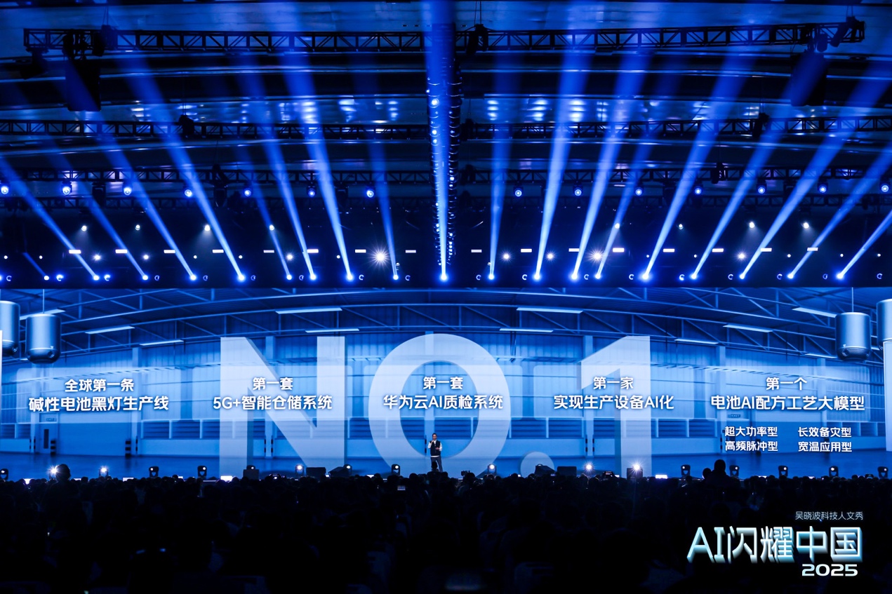 吴晓波在演讲中重点提及的双鹿电池“五个第一”,被视为其制造能力升级的集中呈现:全球第一条:碱性电池黑灯生产线;业内第一套:5G 智能立体仓储系统;业内第一套:华为云 AI 质检系统;业内第一家:实现生产设备 AI 化;业内第一个:电池AI配方工艺大模型。