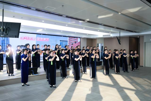 当天,南昌市老年大学旗袍秀班的学员们走进江西工艺美术馆,近距离感受非遗匠心。大家驻足于展柜前细细品鉴、热情打卡,用手机记录藏品细节和美好瞬间,聆听讲解员讲述藏品背后的文化密码。旗袍是东方女性优雅气质的代名词,古巷骑楼传古韵,一袭旗袍梦芳华。随后,学员们以展厅为舞台,上演一场别样的旗袍秀。当传统服饰美学邂逅非遗工艺,这场跨越时空的旗袍与工艺美术对话,让老年学员们进一步感受到中华文化的深厚底蕴,也为传统工艺与现代生活的创新融合频频点赞。参观结束后,学员们还精心编排了一些节目表演。