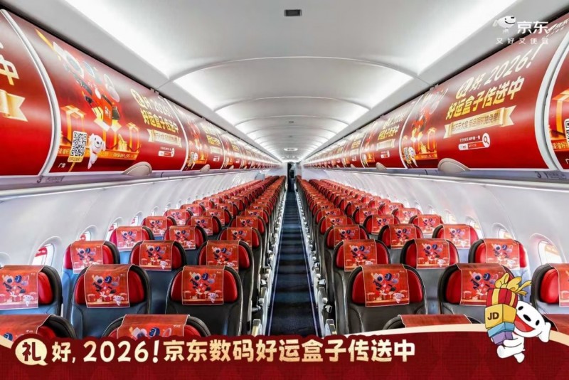 本轮双旦礼遇季营销的又一大创新亮点是京东数码携手京东旅行及长龙航空共同策划的[礼]好2026,好运盒子传送主题事件营销。该事件巧妙串联空中与地面场景,为旅客打造了一场贯穿行程的开年惊喜体验。