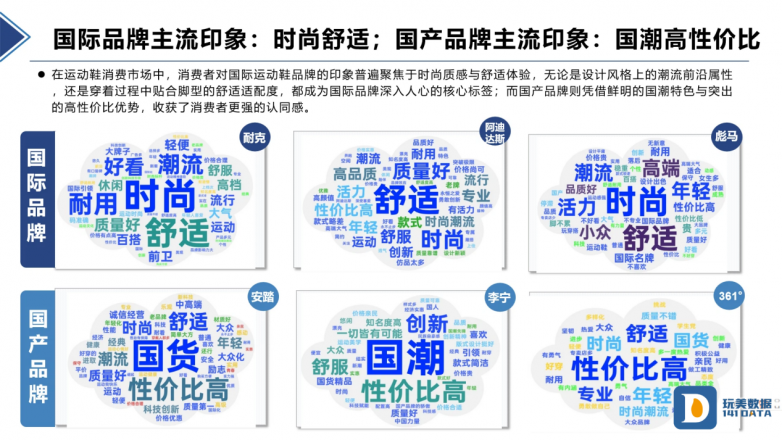 国产品牌则在细分领域展现出差异化竞争力。安踏、李宁在运动器械、户外休闲及健身设备中实现突破;迪卡侬在户外休闲设备中表现突出。值得关注的是,现阶段消费者对国际品牌的主流印象集中于“时尚”与“舒适”,而对国产品牌的认知则倾向于“国潮”和“高性价比”。