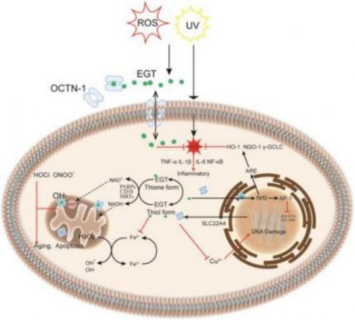 引言:目前研究发现麦角硫因EGT可降低羟基自由基(-OH)的浓度,保护DNA,蛋白质免受氧化损伤。作为一种安全无毒天然氨基酸衍生物,EGT在人体内具备抗氧化、抗炎、维护细胞正常生长和细胞免疫、保护皮肤及抗紫外线辐射等多种功能,特别在食品、化妆品以及健康领域具有广泛应用前景,已经成为天然抗氧化剂的明星化合物。