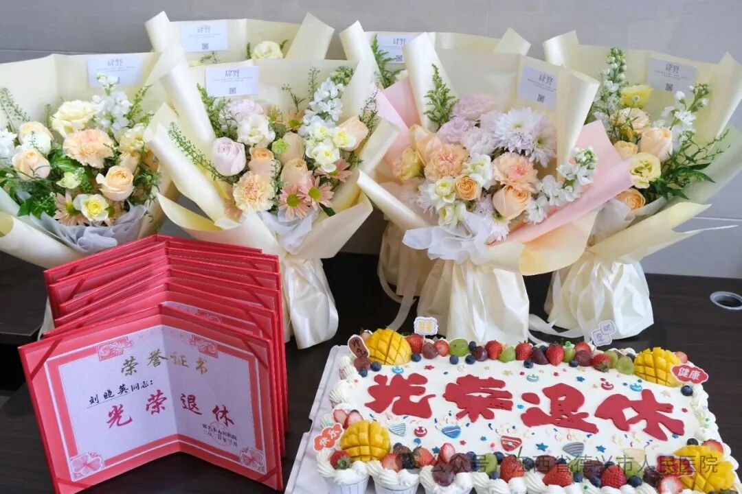 仪式尾声,院领导为荣退职工郑重颁发荣退鲜花、证书及慰问品,全体参会人员合影留念,用镜头定格这段跨越时光的医路情长。此次荣退仪式既彰显了医院对退休职工的尊崇与人文关怀,也凝聚了全院上下接续奋斗的力量,为医院高质量发展注入温暖动力。