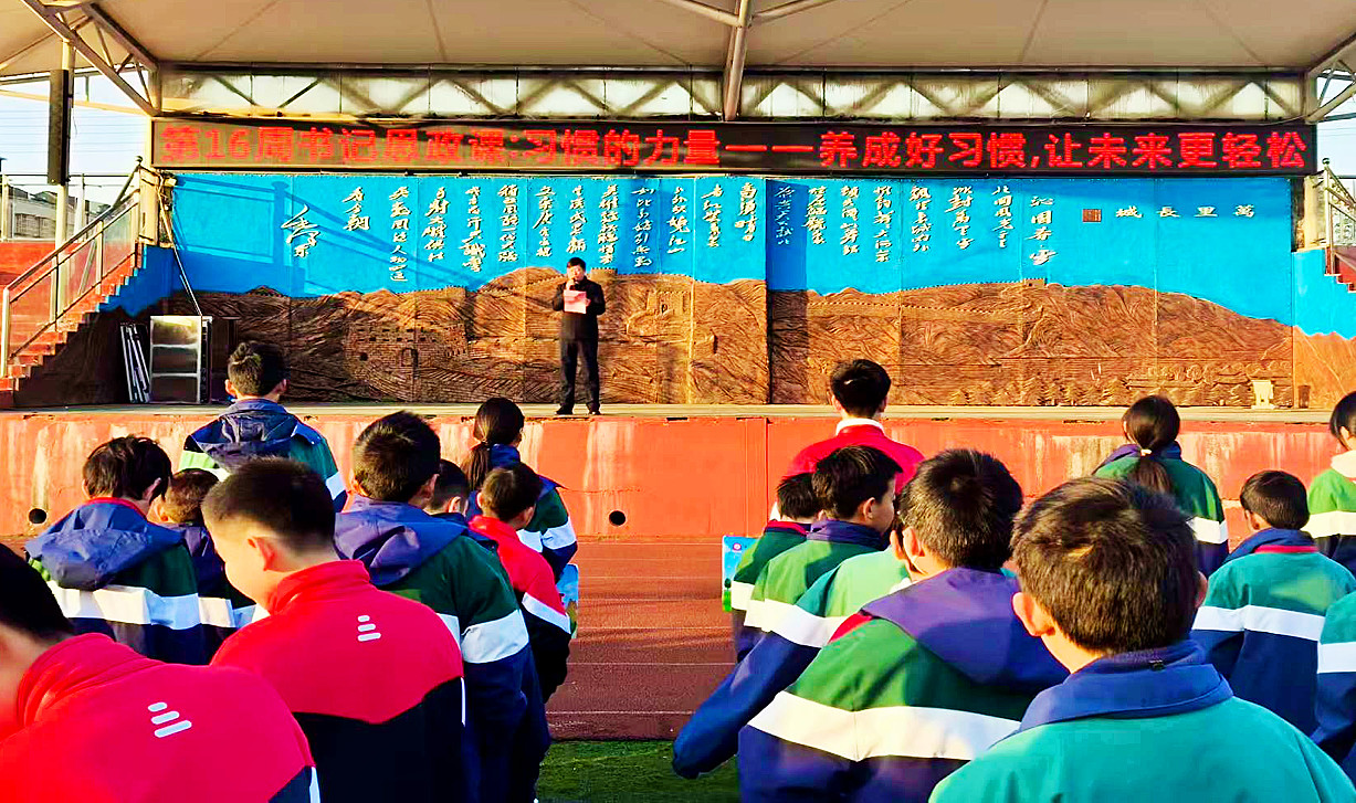 李洪盛书记的思政课摒弃空洞说教,结合鲜活案例、身边故事与时代要求,用通俗易懂的语言传递正能量。在“防止校园欺凌”主题课上,他通过真实案例剖析危害,教会学生自我保护与互助友爱;在“梦想”主题分享中,他鼓励学生将个人理想融入国家发展,以刻苦学习浇灌梦想之花。常态化的思政教育让升国旗仪式后的校园时光成为立德树人的重要阵地,不仅强化了学生的爱国情感与集体意识,更在潜移默化中培养了他们的良好品德。